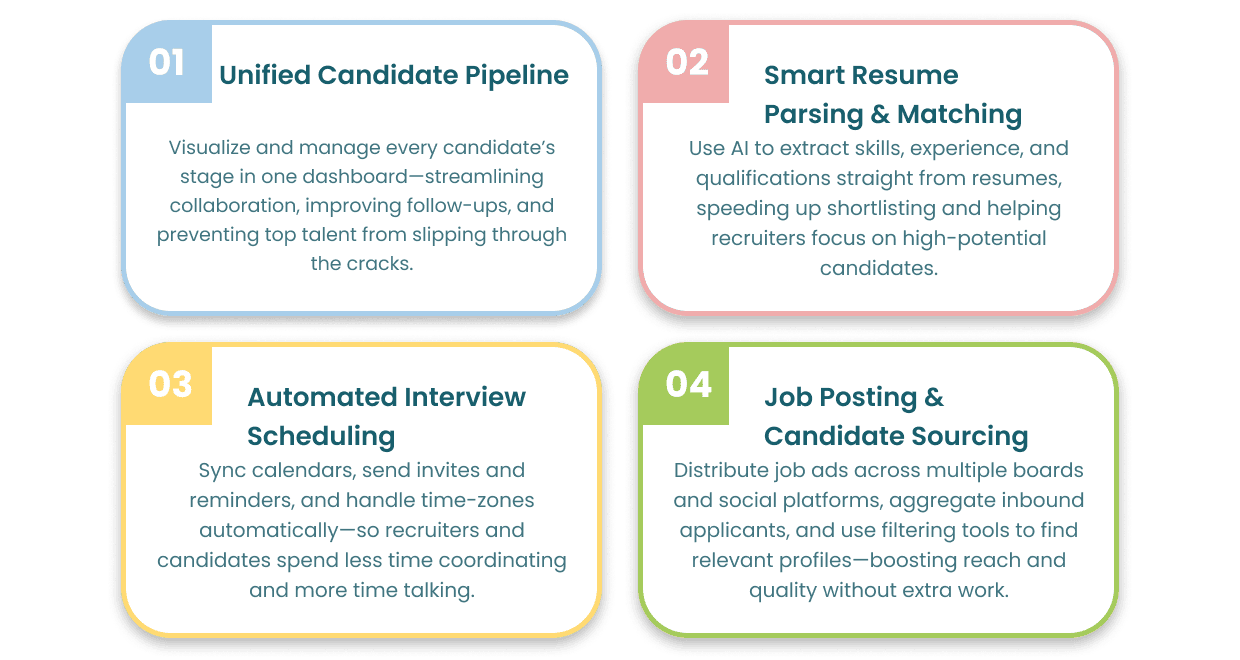 Zoho Recruit is more than just an applicant tracking system—it’s a smart hiring platform that connects businesses with the right talent faster. Built for recruiters and HR teams, it simplifies the entire hiring process, from posting jobs and parsing resumes to scheduling interviews and managing candidate pipelines. With AI-driven tools, automation, and seamless integrations, Zoho Recruit eliminates repetitive tasks and ensures a smooth experience for both candidates and hiring teams. The result? Faster hiring, smarter decisions, and stronger teams.