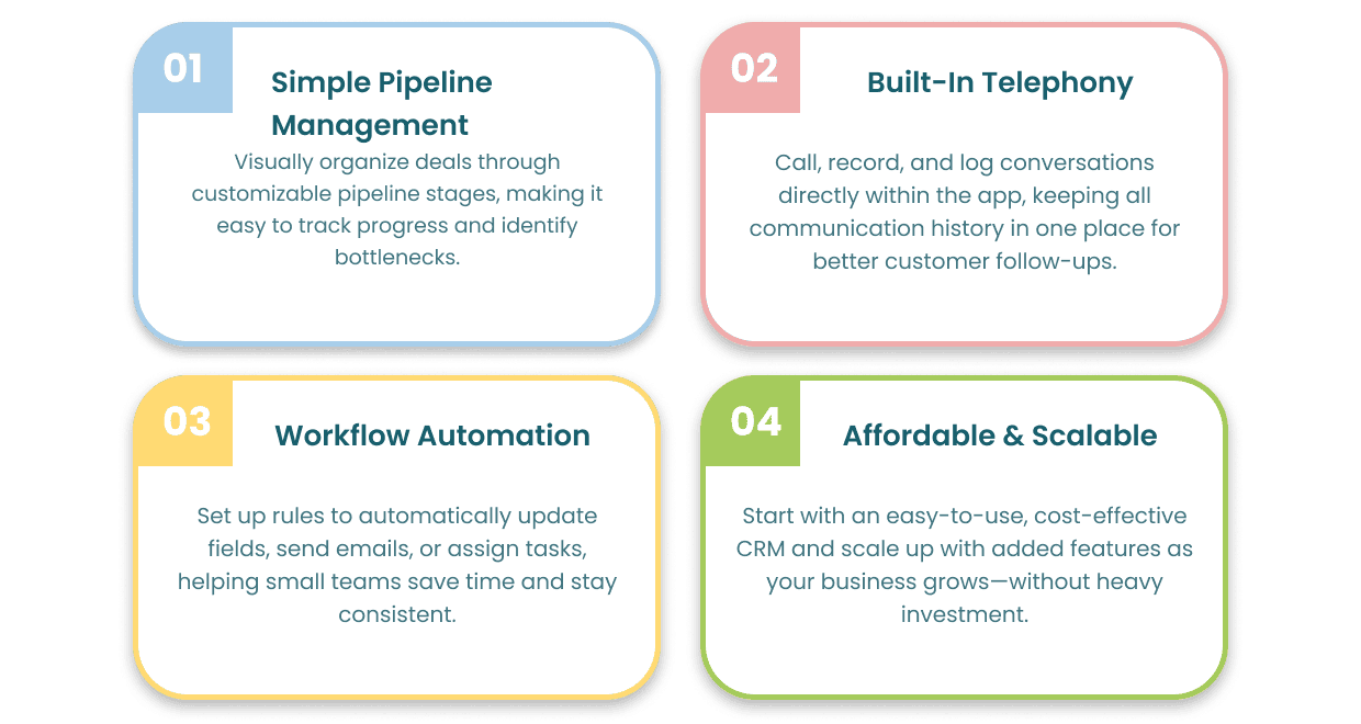 Zoho Bigin is more than just a lightweight CRM—it’s a dedicated small-business sales solution designed for simplicity and speed. With customizable pipelines, built-in telephony, and workflow automation, it helps teams organize sales activities and close deals without complexity. Affordable, easy to set up, and scalable as you grow, Zoho Bigin gives small businesses the right tools to sell smarter and strengthen customer connections.