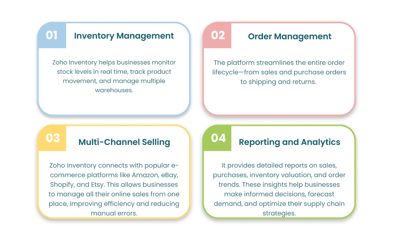 Zoho Inventory is a cloud-based tool that helps businesses manage stock, orders, and warehouses efficiently. It offers real-time tracking, multi-channel selling (Amazon, Shopify, etc.), barcode-based fulfillment, and smooth integration with Zoho apps and third-party platforms. It's affordable, scalable, and ideal for small to mid-sized businesses looking to simplify inventory operations.