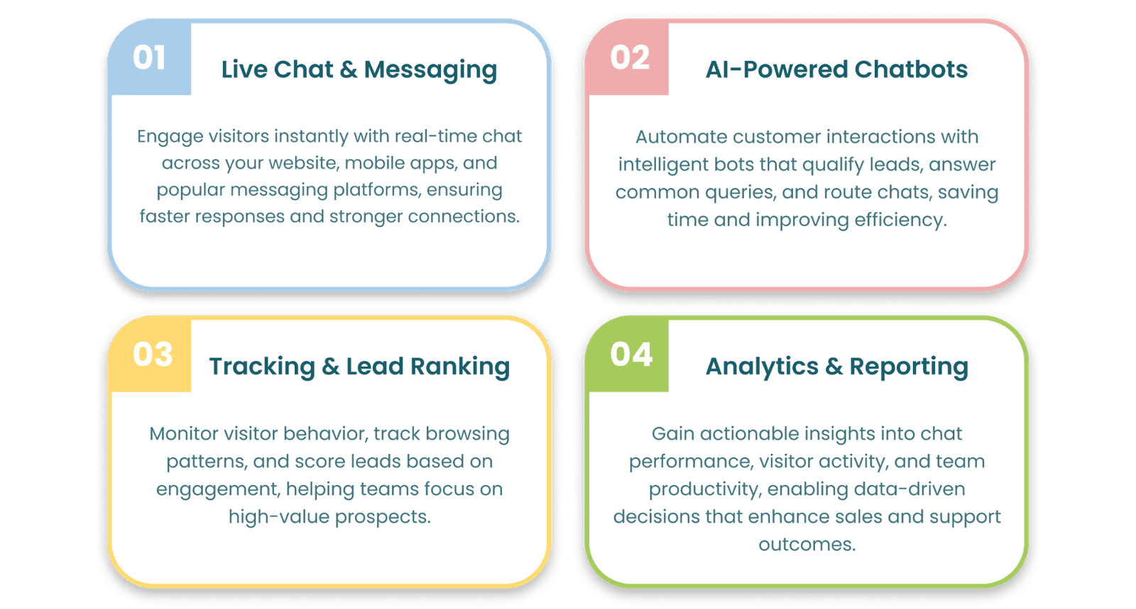 Zoho SalesIQ helps businesses engage website visitors instantly through live chat, chatbots, and omni channel messaging. It tracks visitor journeys and scores leads, allowing teams to focus on high-value prospects. Built-in analytics provide insights into customer behaviour and team performance. The platform streamlines sales and support, boosts conversions, and strengthens customer relationships.