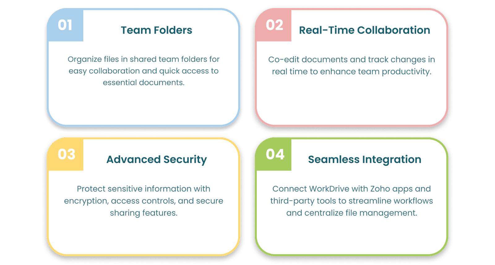 Zoho WorkDrive is more than just cloud storage—it’s a complete file management platform to organize, share, and collaborate on documents seamlessly. Designed to be secure, scalable, and collaborative, it helps businesses of all sizes enhance team productivity, track changes, and safeguard important data.